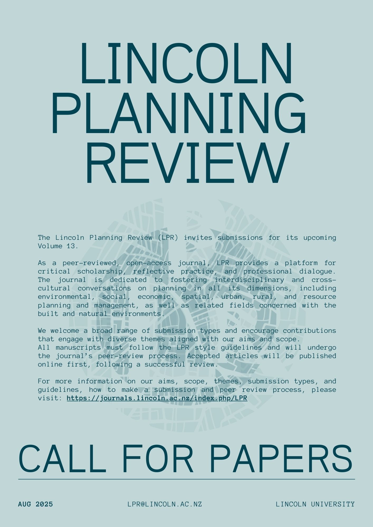 Call for Papers - Volume 13 of the Lincoln Planning Review